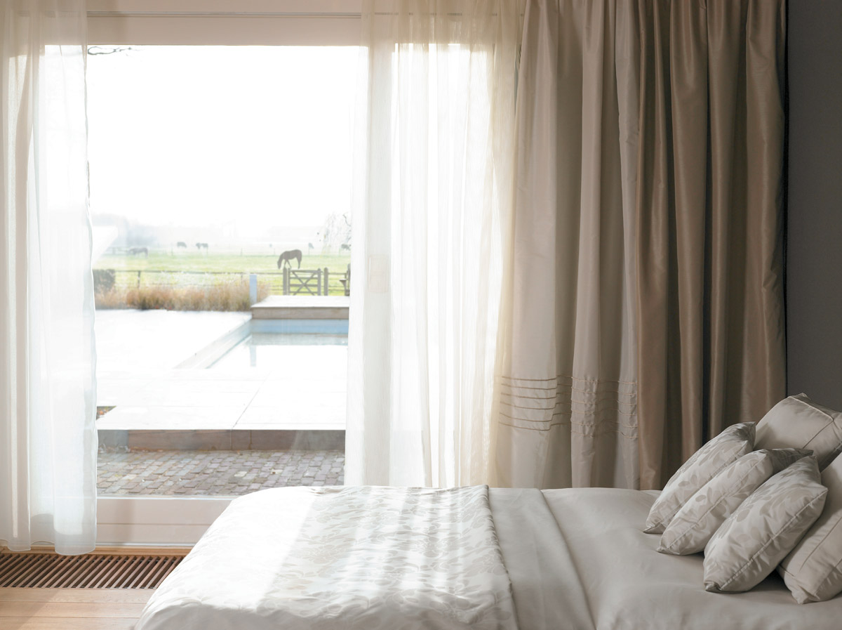 Los textiles también son importantes para que te sientas relajado. Si las dimensiones del dormitorio te lo permiten, pon en la ventana un visillo transparente y unas caídas a los lados con un tejido más grueso en liso, con rayas o estampado, y si te apetece, que arrastren por el suelo, con eso lograrás un ambiente más sofisticado. La cama tiene que estar bien vestida con sábanas o fundas nórdicas, preferiblemente de 100% algodón, las ideales son las de Bassols, Bassetti o Zucchi, son las más suaves y agradables para la piel. La colcha depende del color de la pared, pues si la pared tiene un color llamativo, la colcha tiene que tener colores más neutros, y si por el contrario, la pared tiene colores claros la colcha puede ser más rompedora, pero sobretodo, que sea una buena tela y un buen diseño. Los cojines y plaids o mantitas, con tacto suave para los pies de la cama, son piezas de decoración, pero al mismo tiempo sirven para las noches de más frío.