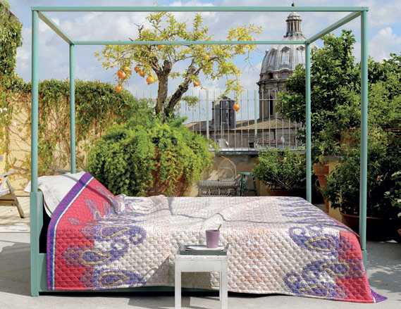 Esta colección está compuesta por: sábanas, colchas, foulards, cojines, manteles, plaids y kimonos, todos de 100% de algodón y estampados con sistema Indanthren, con unos diseños y colores de moda.