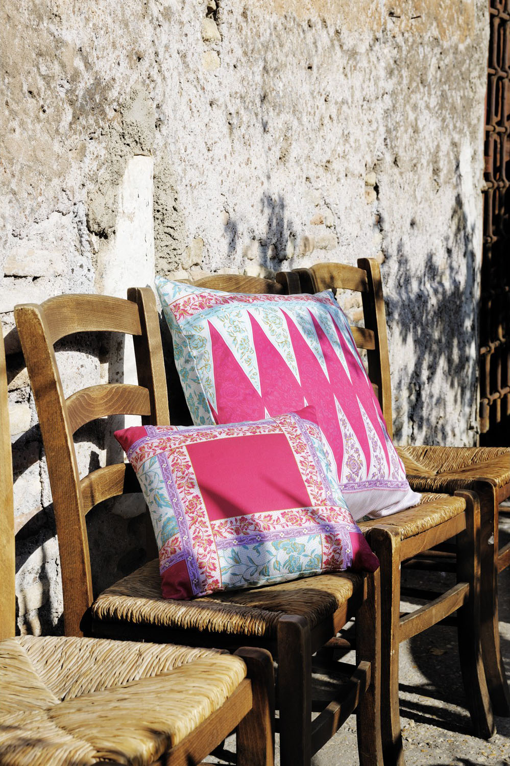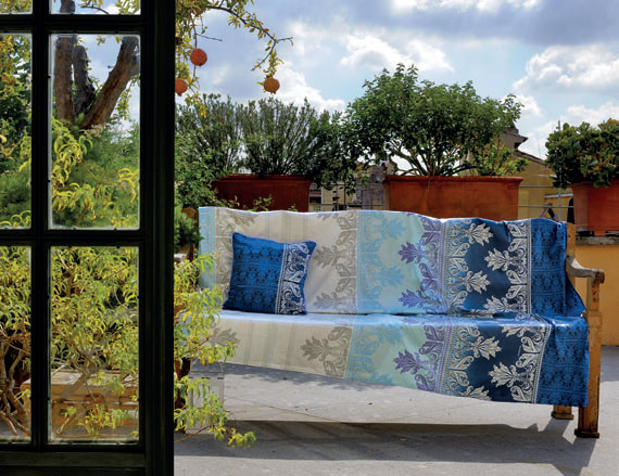 Los cojines fabricados con tejido también de algodón y con la tecnología “Indanthren” van coordinados con las colchas, sábanas y foulards, por eso los puedes colocar en la cama, en el sofá o donde se te ocurra.