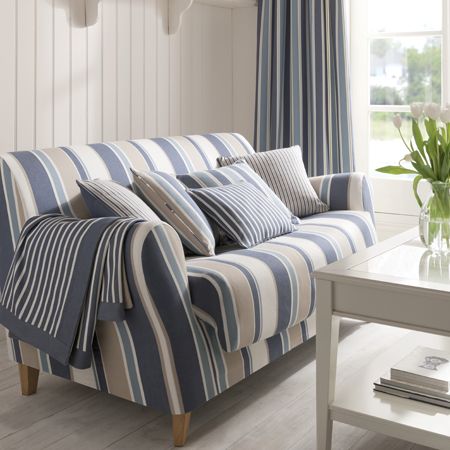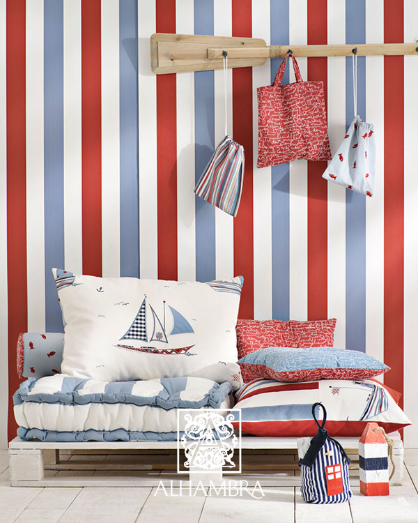 Las rayas en los textiles como cojines, cortinas, tapizados,… o incluso en papeles pintados.