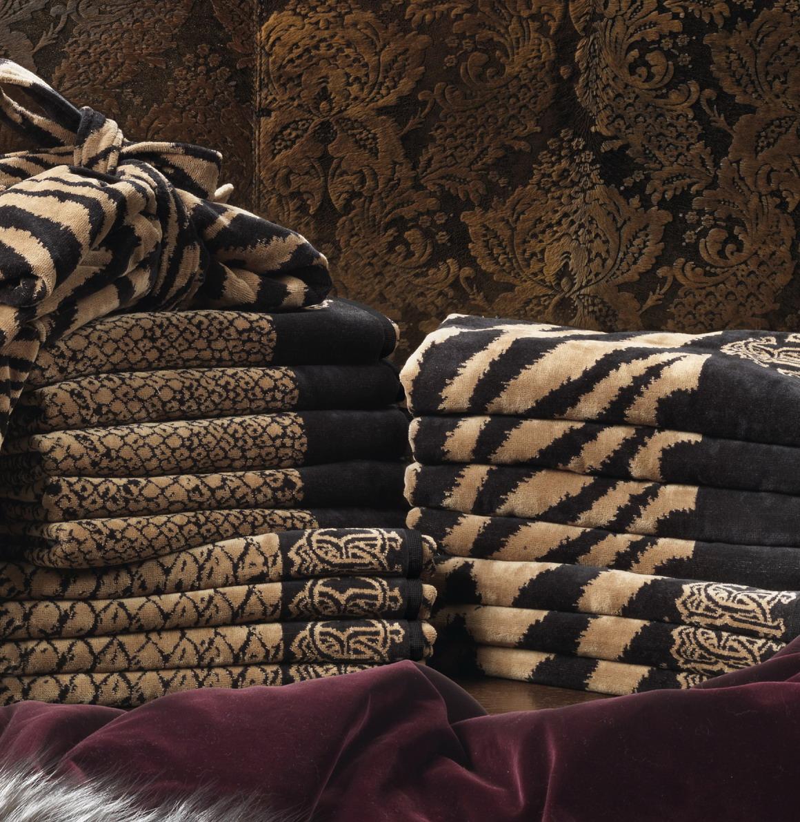 Si quieres tener un baño elegante y con glamour, vístelo con estas toallas y albornoces de Roberto Cavalli, sorprenderás a tus familiares y amigos.