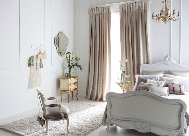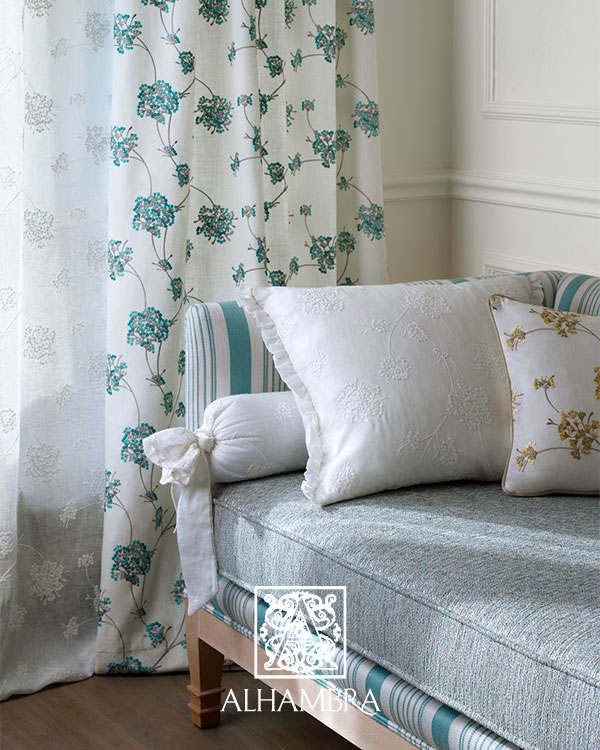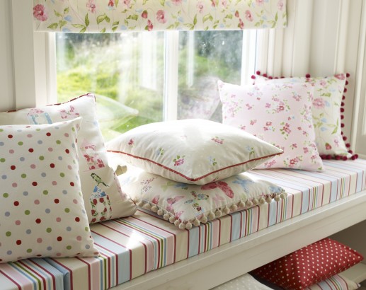 Los tejidos para cortinas, colchas, cojines, tapizados,… son determinantes, con distintas texturas, pero siempre tejidos naturales como son el algodón, lino,… estampados de flores, rayas o pequeños dibujos como lunares, cuadritos Vichy,…y colores pasteles, son un plus de romanticismo, como te indiqué en el post “Decora con telas románticas”.