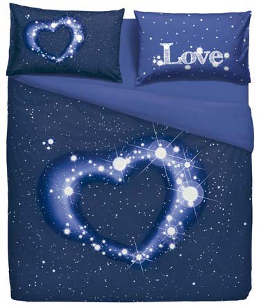 Imagínate el amor con esta funda nórdica o juego de sábanas que está hecho con unos colorantes especiales que se cargan con la luz, y en la oscuridad se ilumina. Es un conjunto ideal para el día de los enamorados o porque no, para regalártelo.