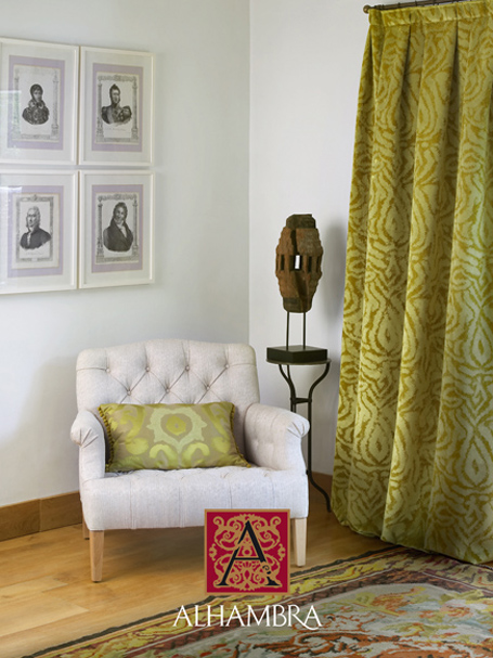 Estos tejidos de terciopelo son de Alhambra y los tenemos en la tienda de Vila- real, si quieres cualquier información ponte en contacto con nosotros, te las podemos enviar dónde tú quieras.