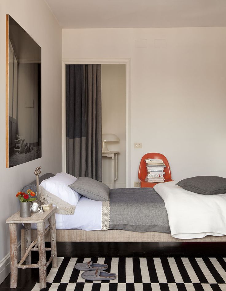 Por ejemplo, una habitación dónde ya tienes los elementos principales como los muebles, colcha, cortinas,… sean como sean las texturas o dibujos que tengas, si quieres unos cojines o pintar la pared, seguro que las rayas te van bien, siempre que los colores sean los mismos o coordinen con el resto de la habitación, como te expliqué en el post “Cómo combinar distintos estampados en un mismo ambiente”.