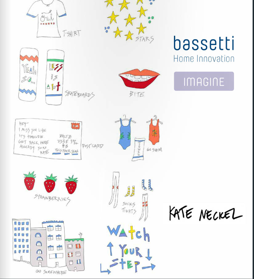 Kate Neckel es una joven artista de Nueva YorK con mucha creatividad. Sus dibujos recuerdan los trazos de los niños, y los que se utilizan en los cómics, que transforman los pensamientos y emociones en signos gráficos.