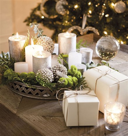 Si después de arreglar el árbol te sobran bolas u otros adornos, no las guardes, coge una bandeja y colócalas acompañados de velas y unas ramitas verdes, y tendrás un centro para colocarlo en cualquier lugar de la casa.