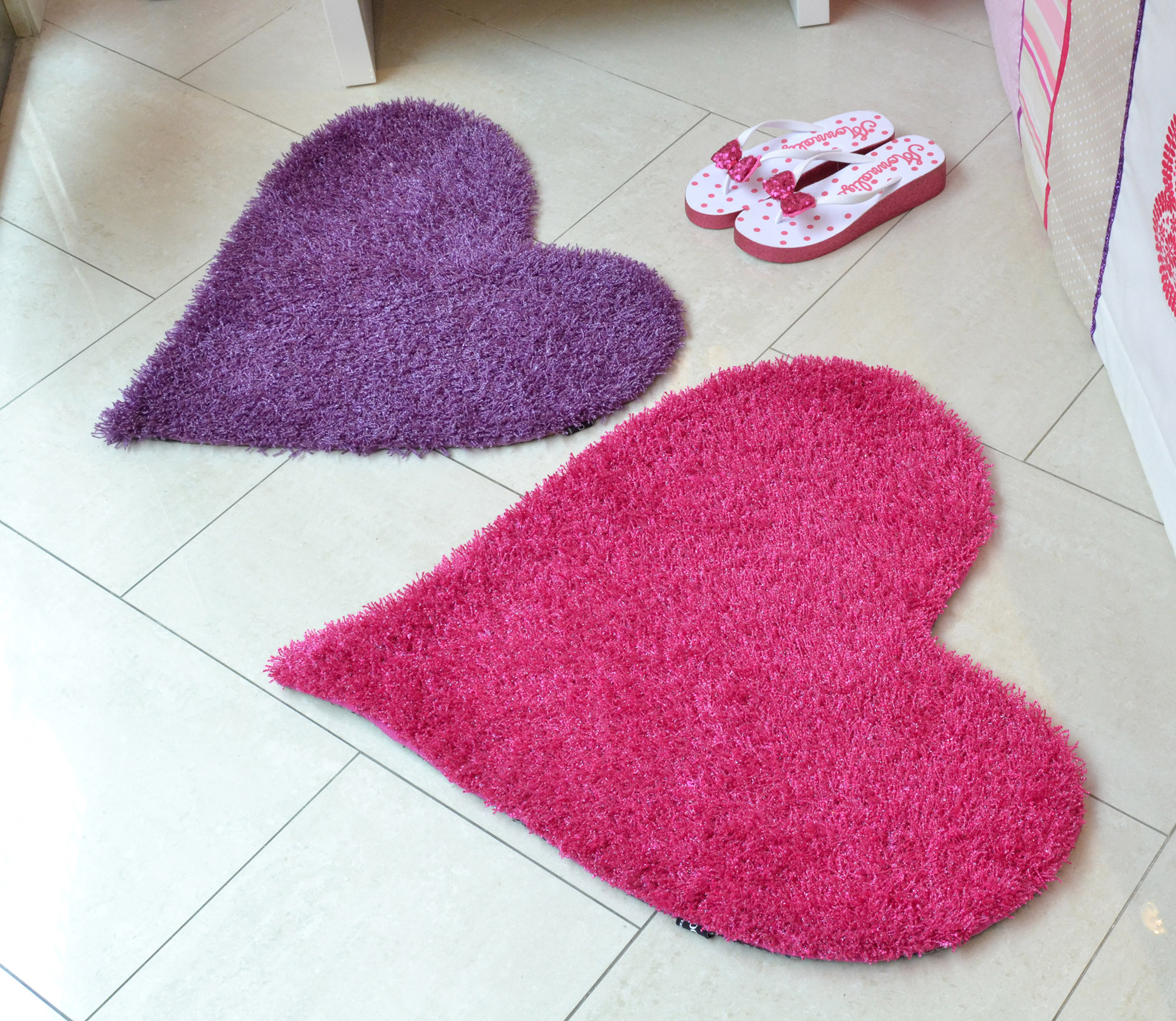 Las alfombras en forma de corazón en rosa y morado es el toque perfecto para completar la maravillosa habitación.