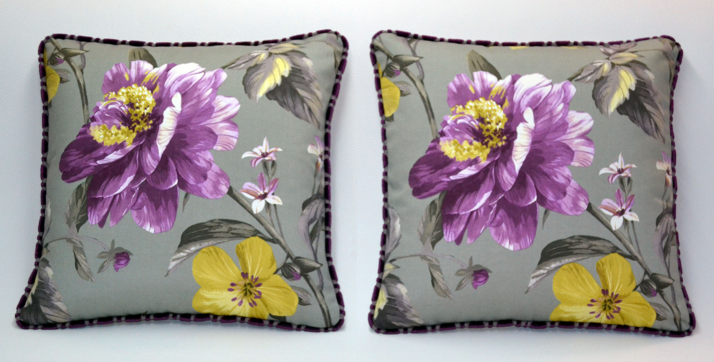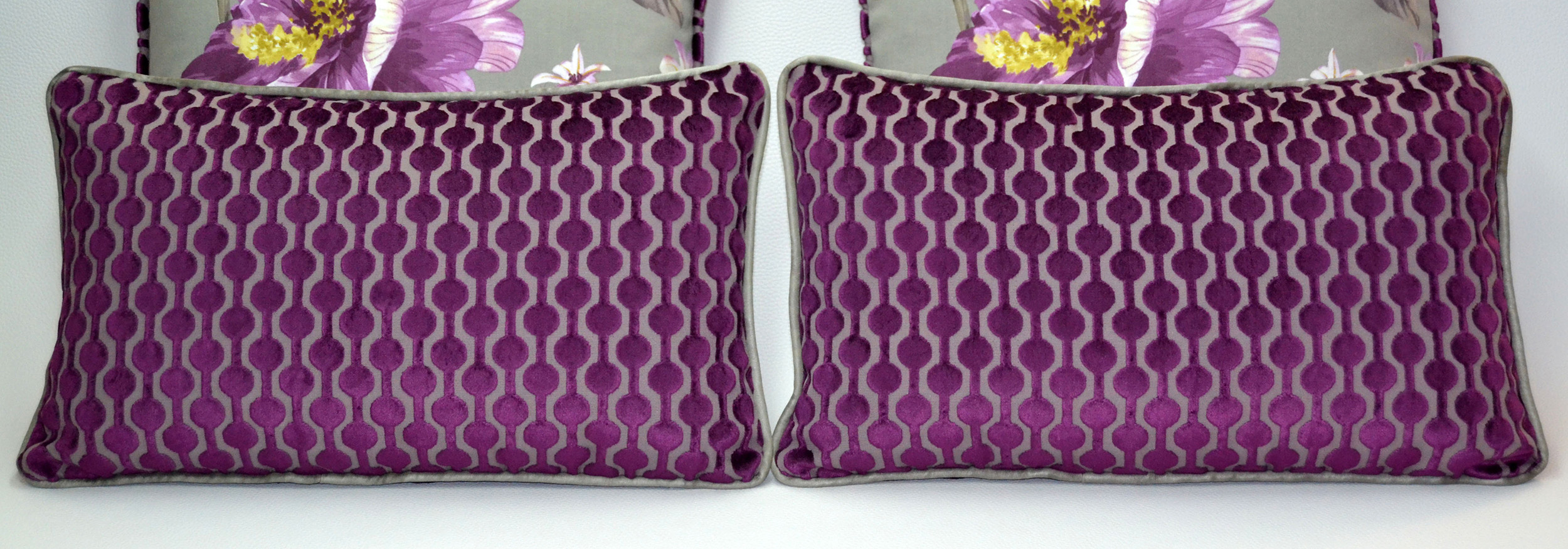 Ayer mismo desde Barcelona, Teresa me llamaba para preguntarme como podría poner unos cojines en su sofá blanco, y me decía que tenía la pared pintada en color orquídea radiante, en la entrada «Orquídea radiante, color Pantone 2014» te hablé de ese color. Ella estaba un poco preocupada porque ya había comprado varios cojines y cuando los ponía en su sofá no le gustaban, me pidió que le ayudara. Le envíe un e-mail proponiéndole los cojines que te enseño en esta entrada y que acabábamos de hacer para la clienta de Onda. Espero que mi propuesta de cojines le hayan gustado a Teresa de Barcelona.