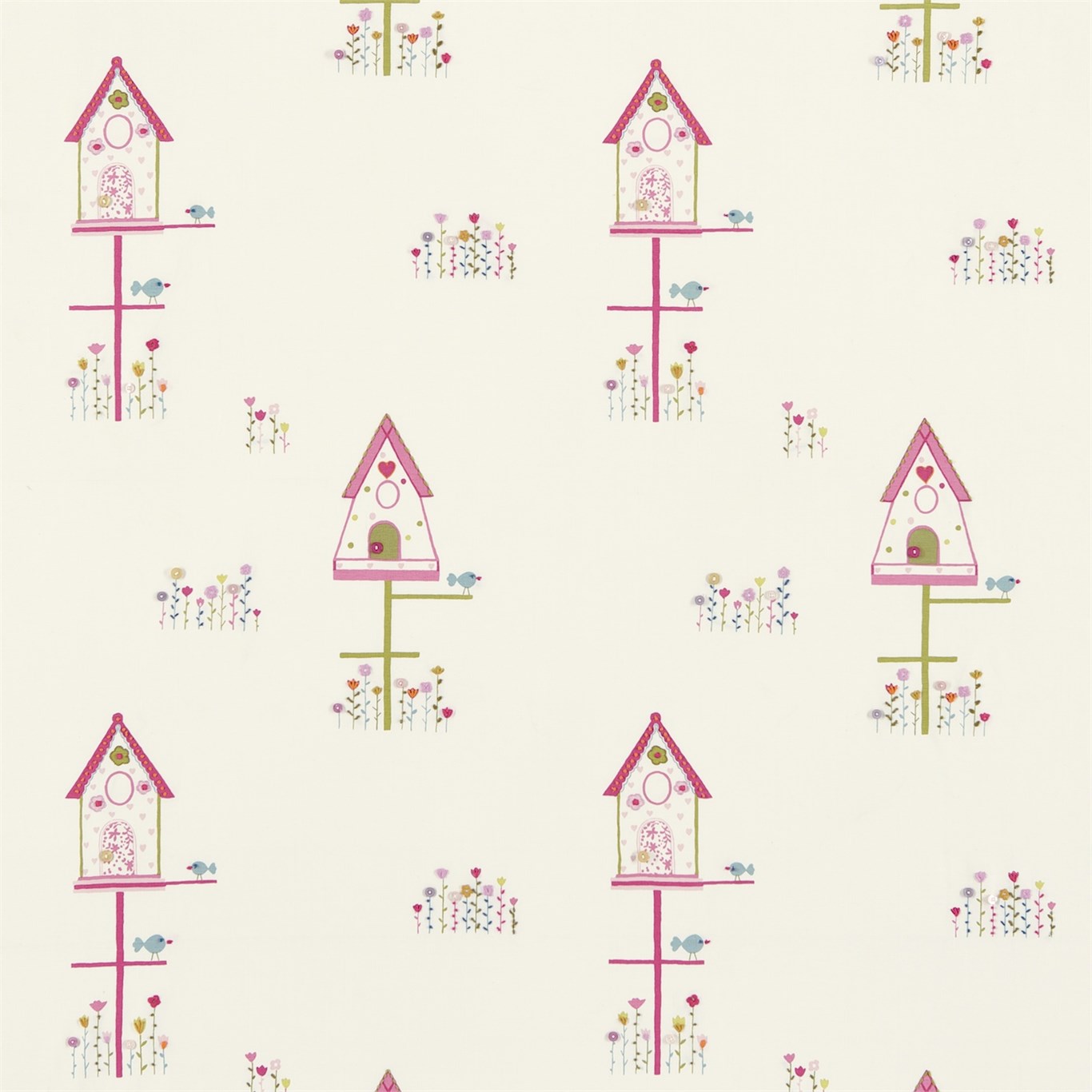 El papel pintado es una discreta florecilla en rosa, que parece pintada a mano.