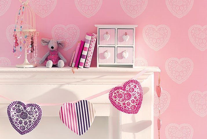Éste de corazones y en rosa es uno de los preferidos, hicimos un escaparate y el resultado lo puedes ver en “Un dormitorio hecho de corazón”.