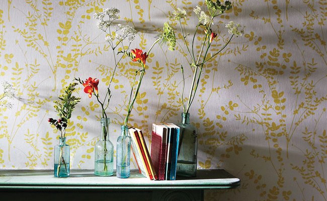 Papeles pintados colores cálidos como el amarillo, transmiten alegría, luz y amplitud. Si te gusta este color puede ser que te interese la entrada “El color de la felicidad, el amarillo”.