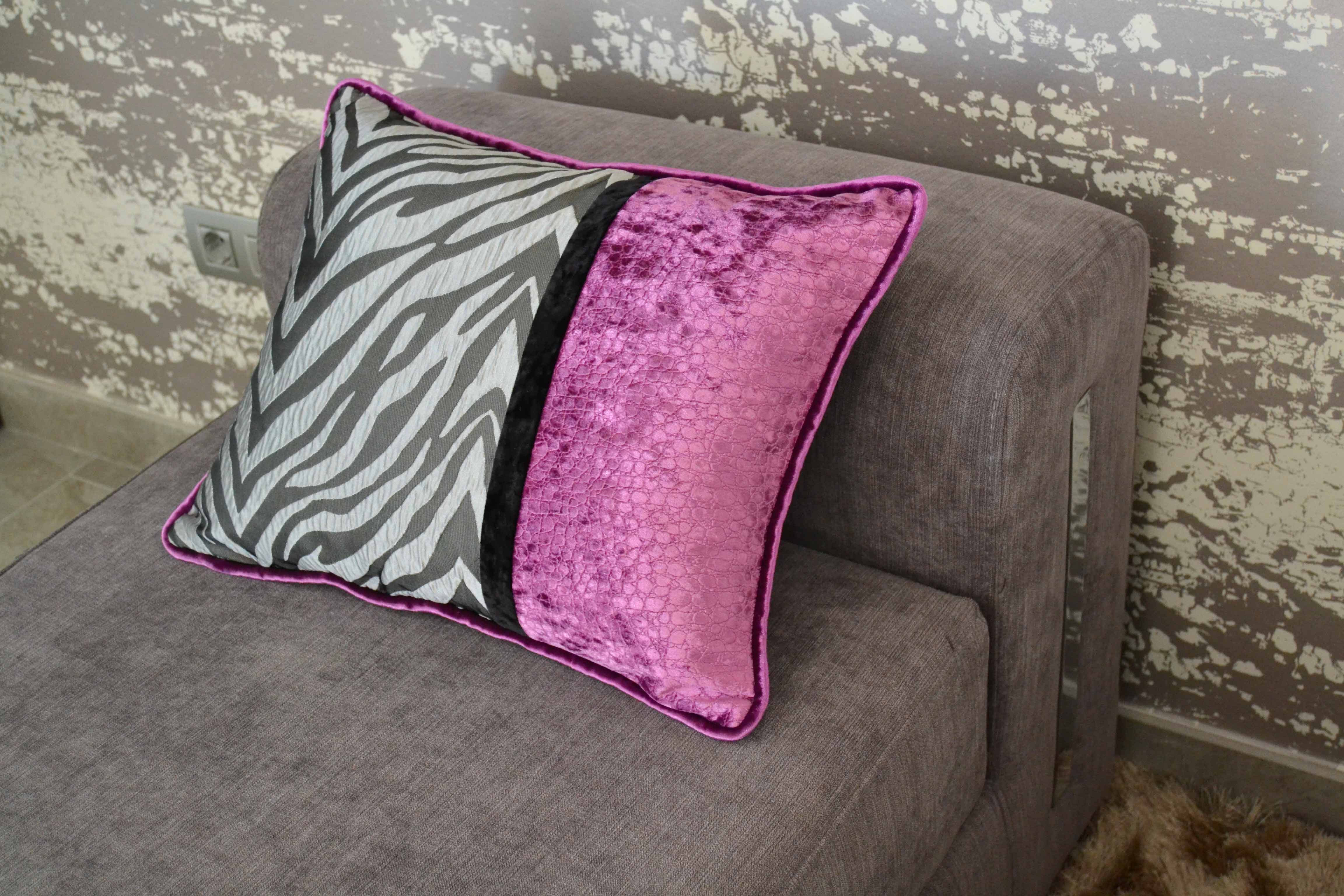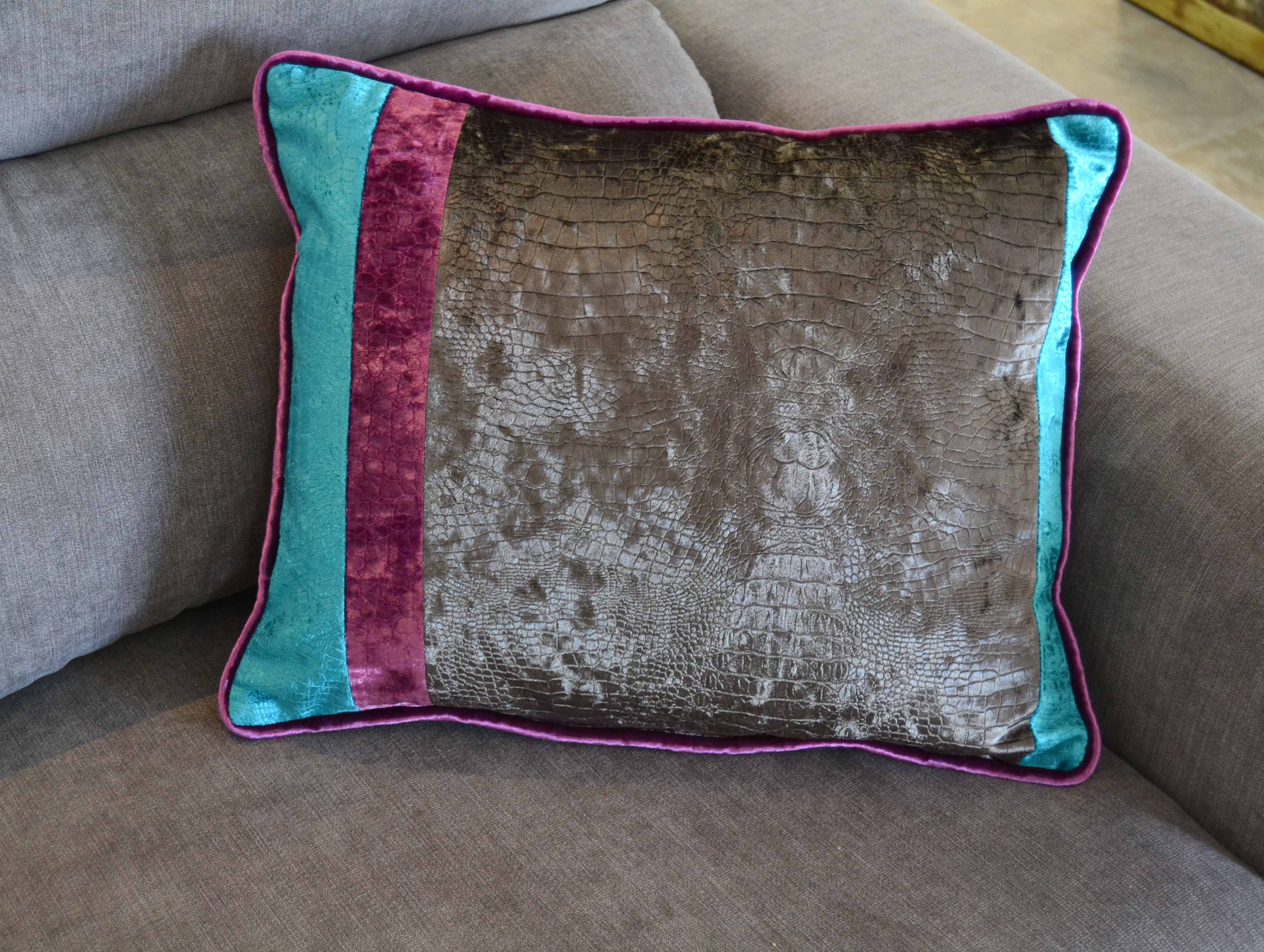 En la pared del salón colocamos un precioso papel pintado con reflejos metalizados. El mueble de TV es de madera wengue con los frentes lacados en blanco alto brillo. El sofá con chaise longue en color gris, y para alegrar el conjunto unos cojines tipo patchwork en colores y texturas distintas.