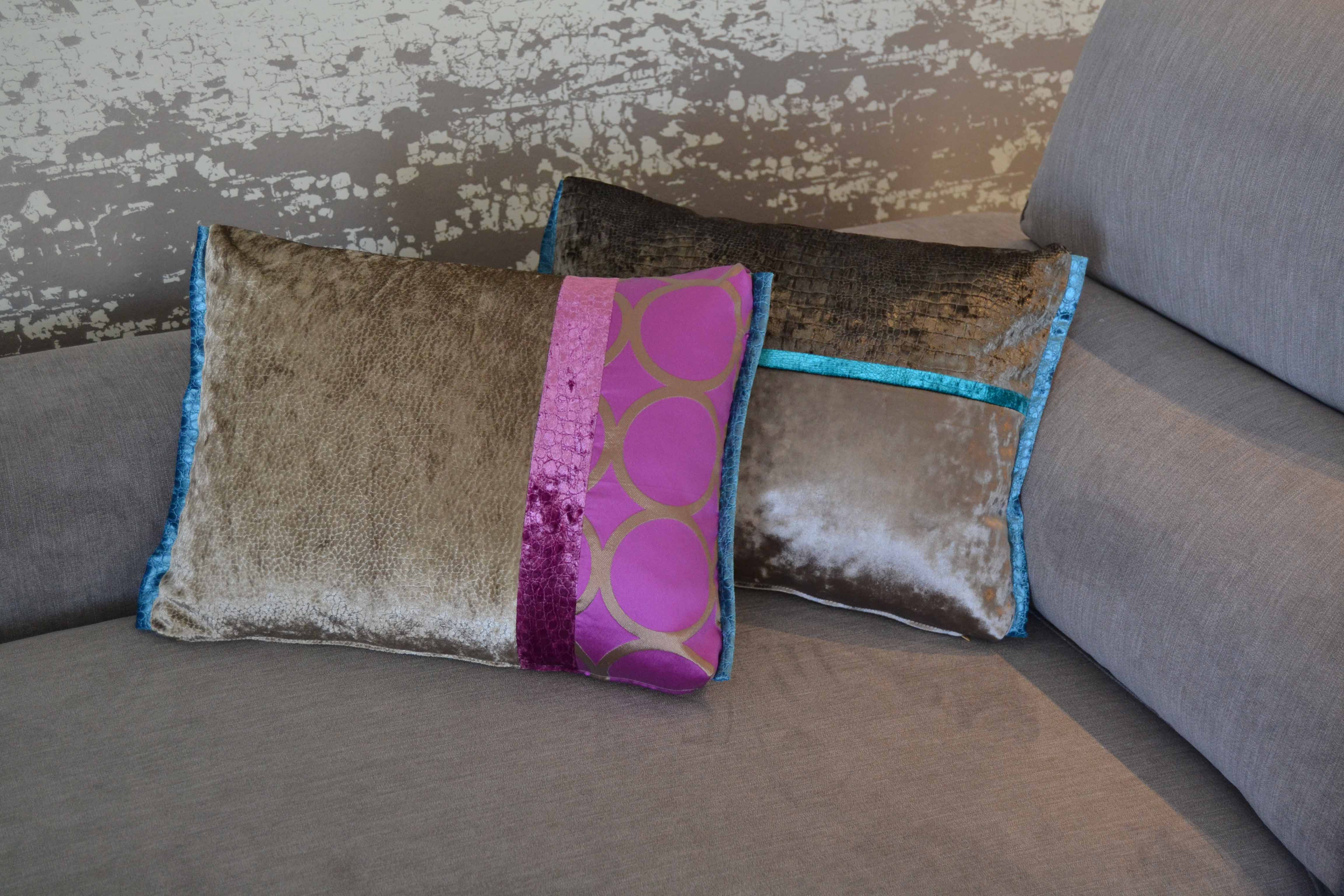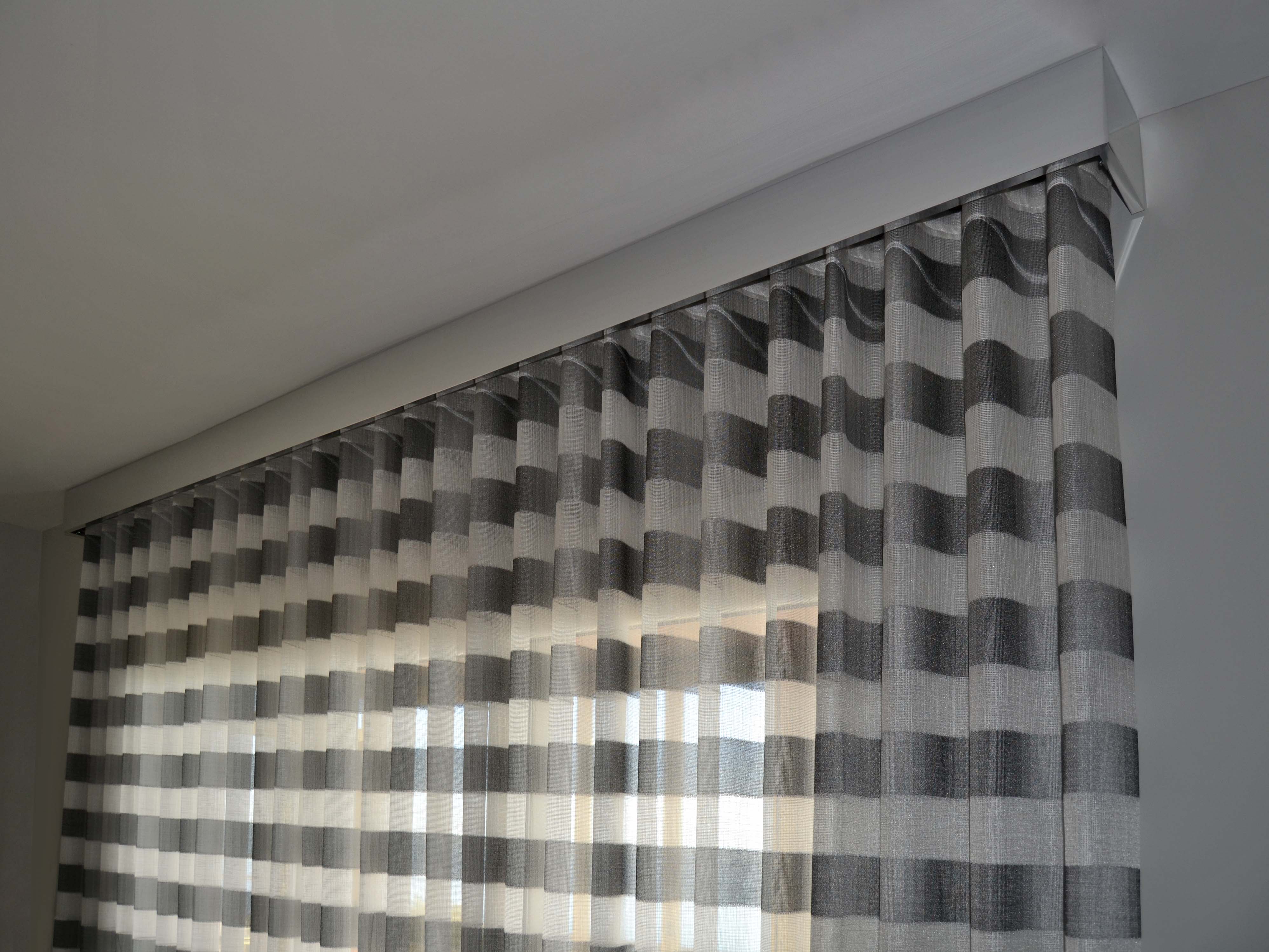 En las ventanas colocamos unas enrollables de screen en color plata metalizado y una cortina para la puerta de la terraza blanca y gris, acabada con el sistema de onda perfecta, por el cual tiene una caída muy bonita. Para unificar las enrollables y la cortina hemos colocado unas galerías de acero acabadas en cromo. Te puede interesar ver algún otro trabajo nuestro como «Una clienta feliz con las cortinas de su salón» o «Salón con visillos y dobles cortinas«.