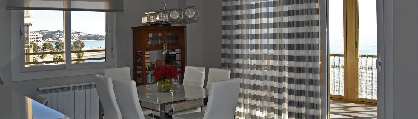 Lo mejor de este salón aparte de que es amplio y luminoso, son las preciosas vistas al mar Mediterráneo, concretamente a la playa de Benicasim. Desde todos los lugares del salón se ve el mar, cocinando, comiendo o incluso desde el sofá las vistas son inmejorables, es todo un lujo.