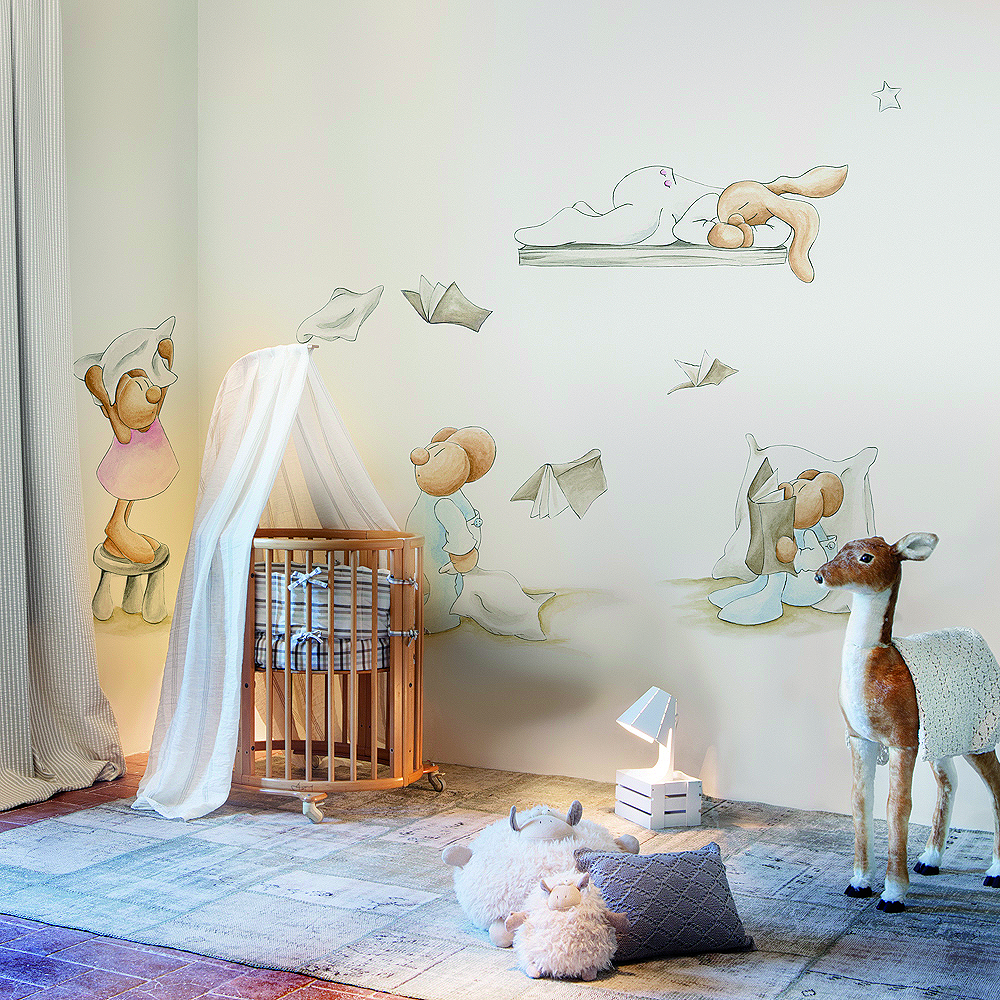 Con los murales de esta entrada y un poco de fantasía, podrás despertar la imaginación de tu peque, y contarle preciosos cuentos con sus protagonistas los conejos, ratones y hadas madrinas.