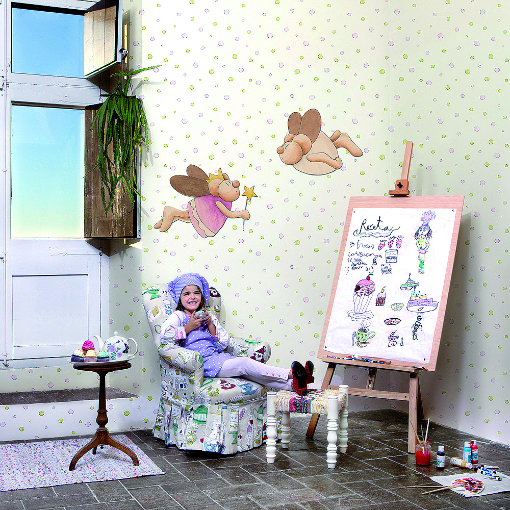 Aparte de los murales también forman parte de esta colección los papeles pintados, siguiendo los mismos motivos de los murales, eso es una gran ventaja para decorar el resto de las paredes de la habitación de juegos o del dormitorio.