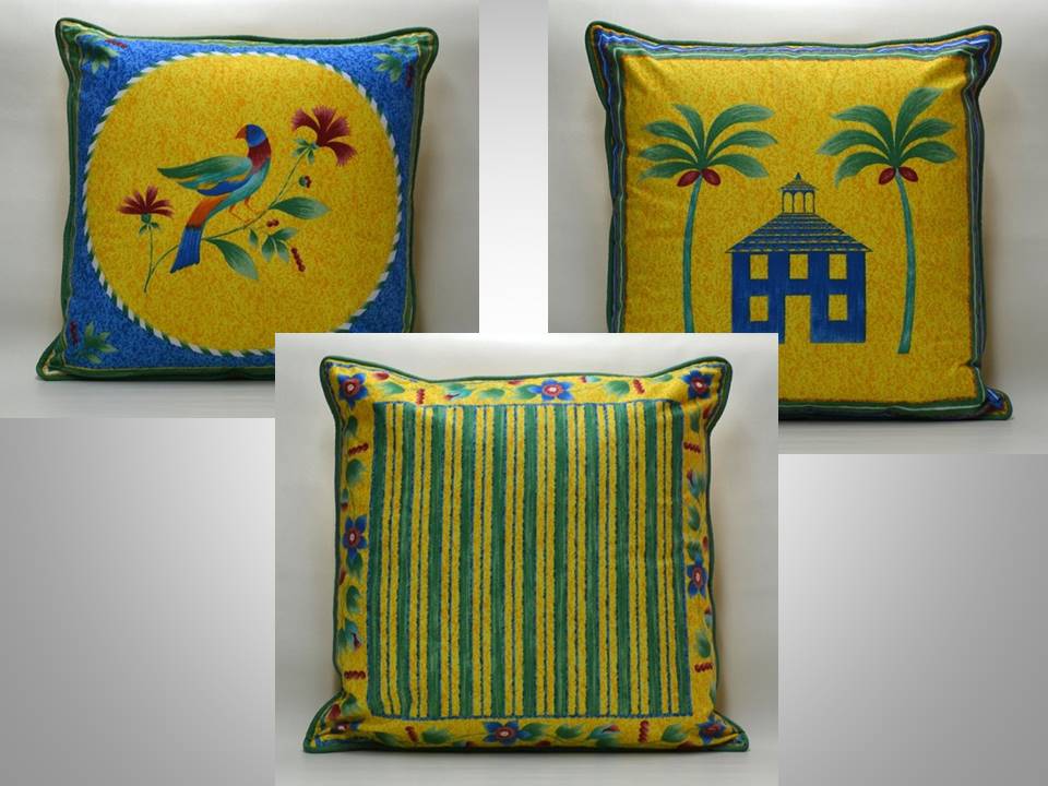 Para alegrar y refrescar la decoración de la casa, hemos hecho unos cojines estampados de un suave 100% algodón, que enmarcan preciosos motivos tropicales.