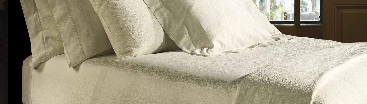 Las sábanas y fundas nórdicas que me encantan son el modelo Jade, su tejido es 100% algodón egipcio peinado mercerizado con 258 hilos por pulgada, tiene un precioso y delicado dibujo ornamental de Jacquard, además es muy suave y agradable al tacto.