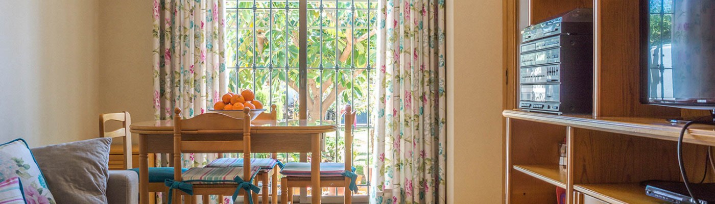 Si sigues este blog sabrás que los textiles son muy importantes para la decoración de un ambiente, en este trabajo hemos querido en alguna manera unir el salón comedor con el jardín mediante las cortinas de flores, como prolongando el interior de la casa con exterior. Las cortinas colocadas en una barra de acero y con ollaos hacen que la caída quede muy bonita y decorativa, además la combinación de colores de las flores en azul y rosa con pinceladas en verde, queda muy actual.