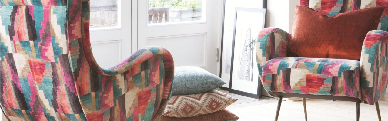 Otra de las ventajas de tapizar con terciopelo es la máxima resistencia a los roces, las telas suelen pasan una prueba que se llama Martindale, te hablé de ella en la entrada «Prueba de resistencia de las tapicerías, método Mardindale«. Por ejemplo esta tapicería de terciopelo estampada es muy original ¡Me encanta! tiene una resistencia de 70.000 ciclos de Martindale, o sea, resiste 70.000 veces los roces al sentarse, imagínate cuanto tiempo se puede disfrutar de esta tapicería. ¡Mira en que colores más bonitos se ha diseñado!