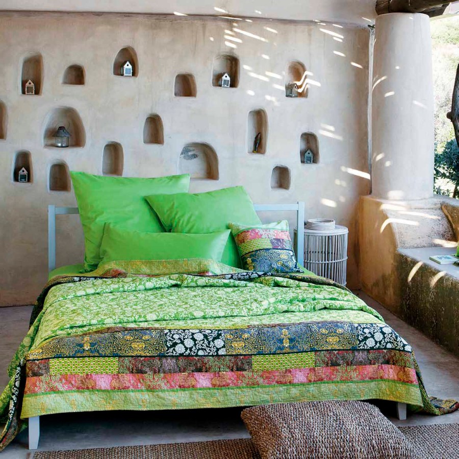 También puedes incorporar el verde en el dormitorio, en las colchas o fundas nórdicas, fíjate en esta preciosa colcha tipo bouti de Bassetti, en nuestra tienda online tienes todos los detalles.