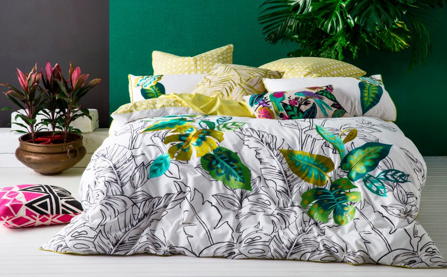 ¡Esta funda nórdica me encanta! Es de la nueva colección de Kas que acabamos de recibir en la tienda y muy pronto la tendrás en la tienda online. Las grandes hojas verdes son bordadas, le da al dormitorio un aire fresco y moderno al dormitorio.