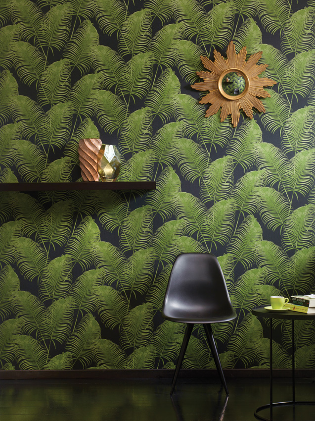 En la pared, pero cuidado… en alguna pared, y no en todas las del ambiente, puedes pintar o colocar un papel pintado, que es la opción que más me gusta. Hay papeles pintados muy bonitos con motivos de vegetación, con hojas e incluso con pájaros exóticos.