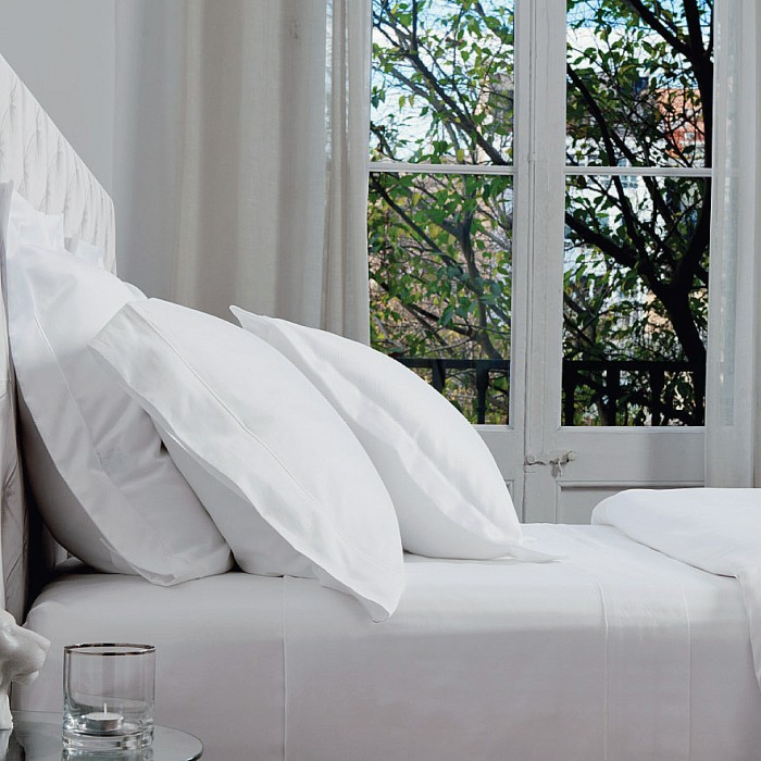 El blanco es un color moderno y al mismo tiempo tiene un toque romántico cuando lo utilizas para vestir la cama. Una de las sábanas más utilizadas en la decoración de los hoteles es ésta lisa de satén, 100% algodón egipcio peinado mercerizado de 400 hilos y acabada con un bordón bordado.