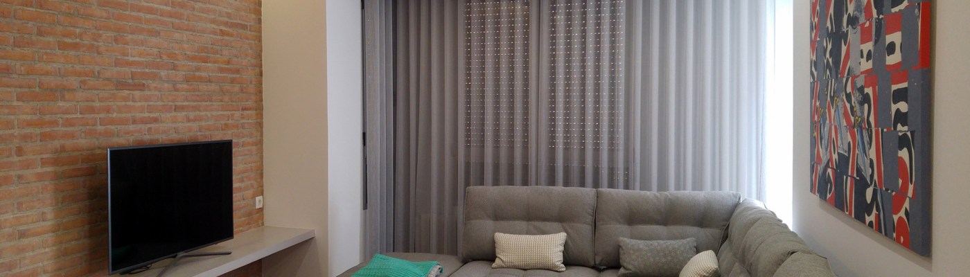 Enric se decoró su nueva casa, es un piso antiguo reformado con mucho gusto, en el que utilizó en su decoración varios materiales, texturas y colores neutros con algunas pinceladas de color. Cuando llegó al tema de vestir las ventanas, ya sabía que las cortinas eran la opción que más le gustaba, y la verdad que fue un acierto total.