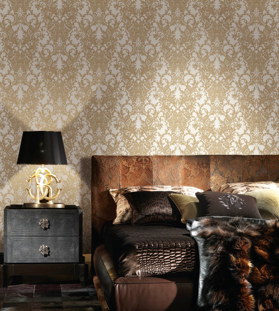 Los «animal print» son atemporales, y siempre están de moda. Son papeles pintados que van perfectos a todos los estilos de dormitorio. Hay de muy bonitos con texturas y colores que resultan muy elegantes, como éste, también de Roberto Cavalli.