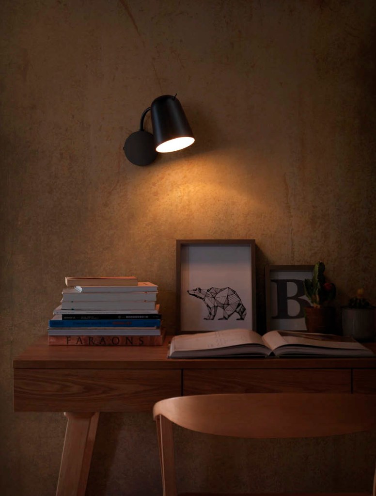 Este aplique también simple y sencillo es basculante, puede ser en negro mate y blanco mate, es perfecto para alguna zona de tu hogar que necesitas más luz como encima de una mesa escritorio para estudiar o simplemente para leer el libro que te tiene enganchad@.
