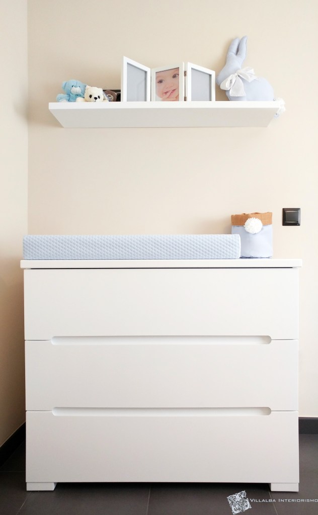 Alexandra, su mamá, puso toda su ilusión y mimo para que cuando llegara Andreas tuviera una preciosa habitación y se encontrara feliz y cómodo. Nosotros le ayudamos en la elección de las telas para la colcha nórdica de la cuna, cojines, volante,… también en los muebles y accesorios para que quedara así de bonita.