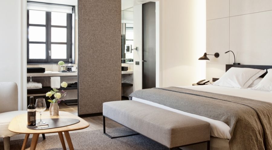 El hotel Sant Francesc está ubicado en una antigua casa palacio Mallorquina de mediados del S. XIX, situada en pleno casco antiguo de Palma de Mallorca. Sus habitaciones están decoradas con elegancia y encanto, para ello, una de las claves son la suavidad y el tacto tan agradable de las sábanas Chamonix de Bassols, son lisas de satén 100% algodón egipcio peinado mercerizado de 300 hilos, con un doble bordón bordado en gris que le da ese toque artesanal y cuidado de un dormitorio de lujo.