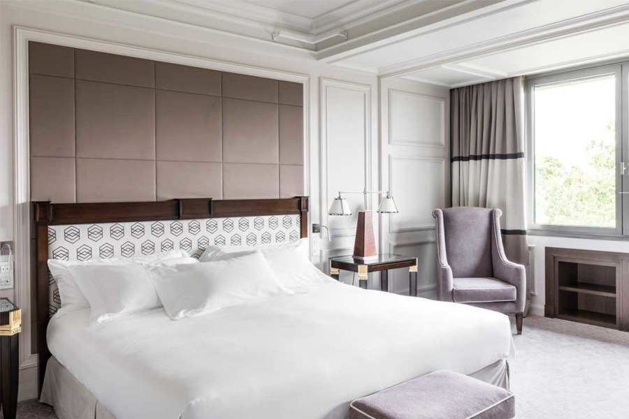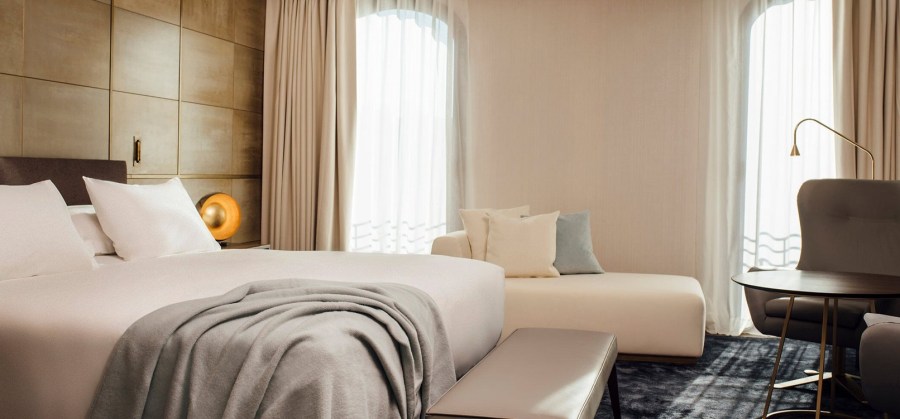 Ahora visitamos la capital de España, y en una de las arterias principales el Paseo de la Castellana se encuentra el Hotel Villa Magna, con una estética muy cuidada y una frescura de un clásico joven, cuyos huéspedes se sienten enseguida muy a gusto en las habitaciones decoradas en una mezcla de texturas y tejidos en tonos neutros y blancos, como las suaves y muy agradables sábanas de Regent de Bassols de satén 100% algodón egipcio peinado mercerizado de 400 hilos, todo un lujo para la piel más exigente.