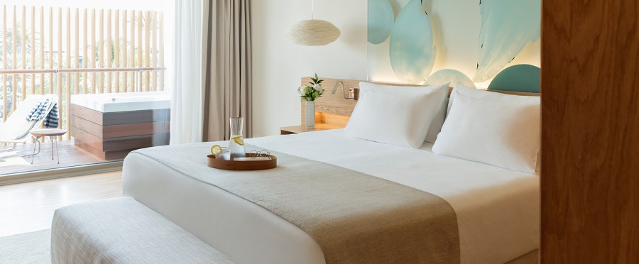 Te traslado a otra isla, ésta es la de Ibiza, concretamente en el hotel Ibiza Gran Hotel, está situado en el paseo marítimo frente a los puertos deportivos y la antigua ciudad amurallada de Dalt Vila, sus habitaciones tienen unas vistas excepcionales de la Bahía de Ibiza, Dalt Vila y Formentera, que junto a los pequeños detalles como las obras de arte que cuelgan de sus paredes, y la suavidad de las sábanas New York de Bassols de satén 100% algodón egipcio peinado mercerizado de 300 hilos y acabado con un bordón en la encimera y almohada, hacen que descansar en sus habitaciones sea una experiencia muy atractiva.