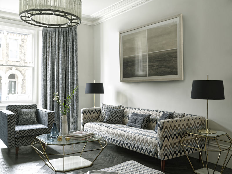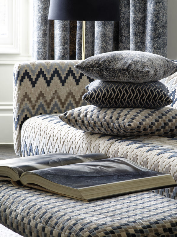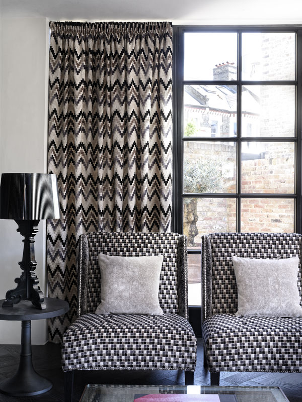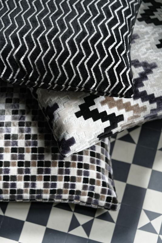 La colección de telas de terciopelo de esta entrada además del blanco y negro también han incorporado en los diseños el color gris, son muy actuales con dibujos geométricos, en zig zag, cuadritos y semi lisos, que coordinados entre si se crean ambientes cómodos, elegantes y con glamour, como los de las imágenes.