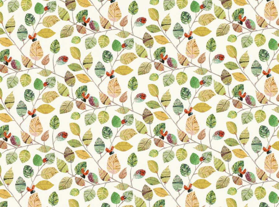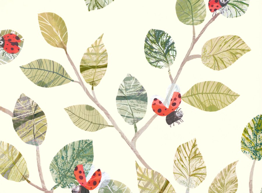 ¿Tienes que decorar la habitación de tu bebé? Si te apetece crear una decoración diferente, original, divertida, alegre,… Te dejo una habitación cuyos protagonistas son las preciosas hojas de colores verdes y alegres mariquitas que se posan sobre ellas y vuelan por todas partes.