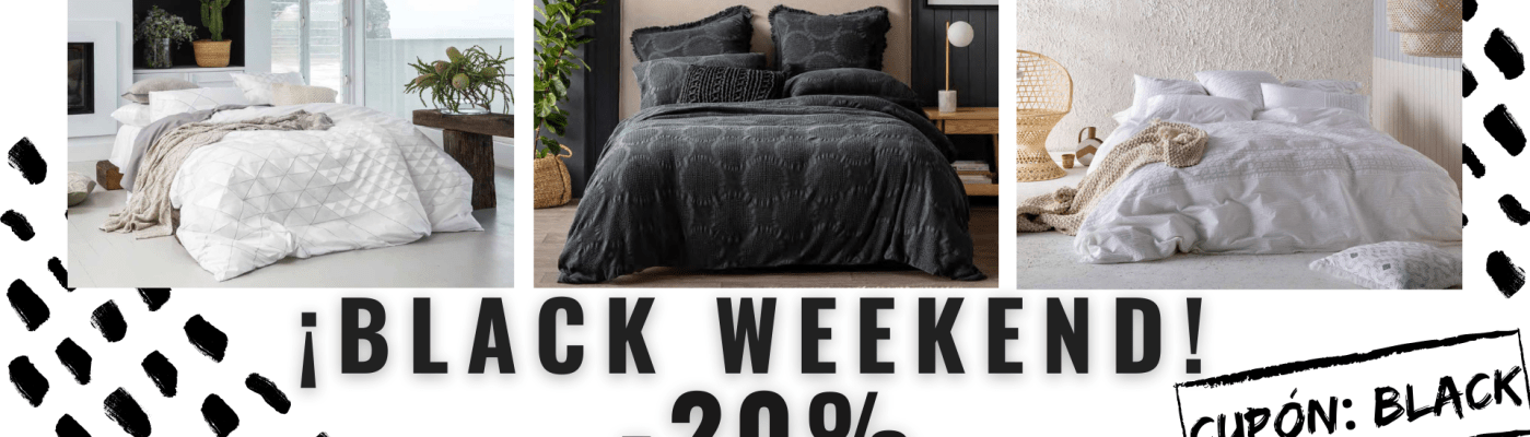El Black Friday se ha convertido en una de las fechas claves para el comercio, y sobre todo, en este año que estamos viviendo, y para que te puedas aprovechar mejor, hemos pasado a la Black Weekend, (fin de semana negro), así que, vamos a alargar los descuentos en nuestra tienda online hasta el domingo 29 hasta las 24 h, para que tengas más tiempo de poder conseguir fundas nórdicas, edredones, sábanas, toallas, cojines,… de las mejores marcas como Calvin Klein, Bassetti, Bassols, Kas Australia, Carrara, Javier Barberá,…