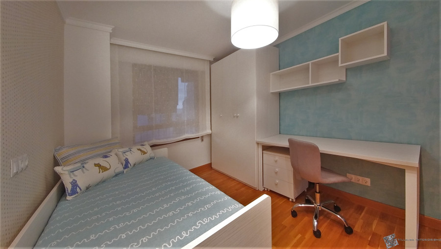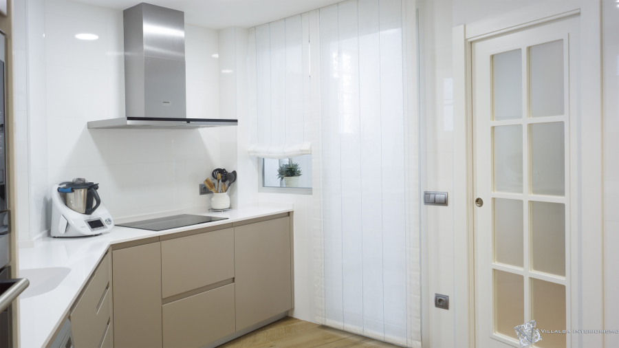 En las ventanas del dormitorio de los niños, despacho, baños y cocina colocamos estores.